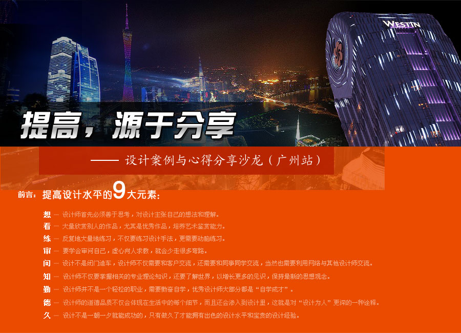 為建立設(shè)計(jì)師面對面交流學(xué)習(xí)的平臺,協(xié)助設(shè)計(jì)師提高設(shè)計(jì)水平,阿拉丁照明網(wǎng)于6月11日在廣州舉辦設(shè)計(jì)案例與心得分享沙龍,各大設(shè)計(jì)師共同參與縱談?wù)彰髟O(shè)計(jì)! >>詳細(xì)請點(diǎn)擊