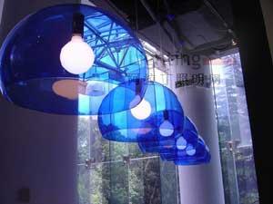 純藍(lán)的透明燈罩、暖白的圓潤(rùn)燈頭,絲絲吊線讓它懸掛在生活之上——看著這樣的吊燈已是一種享受。