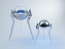 設(shè)計(jì)理念:幾何、結(jié)構(gòu)、力學(xué),構(gòu)出了人類(lèi)的智慧。《海市蜃樓》 以三支金屬支架支撐著整個(gè)圓渾的巨球,表現(xiàn)出冷酷的金屬感。只要輕輕把圓球反轉(zhuǎn),燈光便會(huì)投射出各國(guó)不同的名勝,好像把全世界頓時(shí)連接起來(lái),憧憬一片閃爍光芒,把渴望和夢(mèng)想帶到眼前。