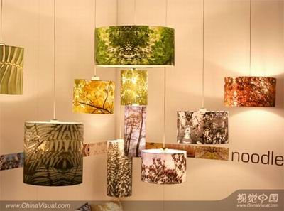 來(lái)自英國(guó)Noodle的燈罩。運(yùn)用紡織品層壓技術(shù)使之覆壓在pvc羊皮紙之上,然后手工旋轉(zhuǎn)完成。所有的產(chǎn)品都是手工制成。