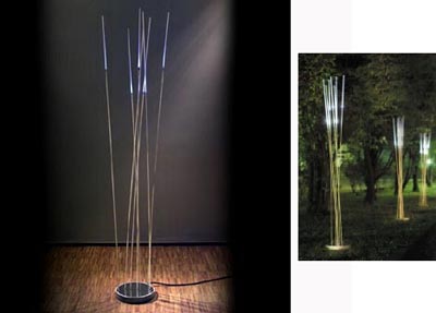 “邊緣”燈具系列是一個“令人驚訝地從墻上長出來的立方體光源”。 燈座位于正方體被切去的那個角上,顏色上有白色版及三色版(紅、橙、紫)?!斑吘墶毕盗羞€加入了一些Artemide出品的新款燈具,包括 Ora Ito設(shè)計的“蜿蜒線條”夾桌臺燈, Pierluigi Nicolin設(shè)計的圓柱形環(huán)境燈, Paolo De Lucchi設(shè)計的實心玻璃燈,以及 Klaus Begasse Comma 和 luminous Reeds 設(shè)計的戶外燈。