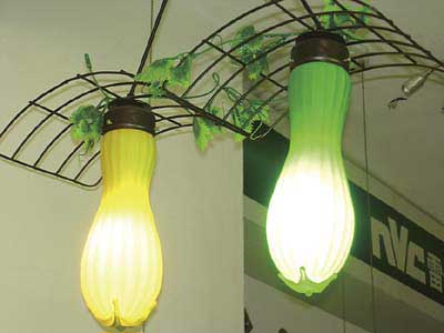在繽紛燈飾超市,店長秦大超告訴記者,現(xiàn)在人們不再僅僅滿足于燈具的照明功能,適用于各種使用需求的燈具應運而生,比如有書寫燈、應急燈、晚餐燈、落地燈、晚霞燈;燈飾的附加功能多得令人難以置信,有音樂燈、搖控燈、節(jié)能燈、環(huán)保燈、無頻閃燈、延時燈,甚至還出現(xiàn)了防盜燈。這些裝飾燈具風情萬種,有體現(xiàn)復古情節(jié)的油燈、宮廷燈,有傳遞文化氣息的書房燈、茶樓燈,有散發(fā)夢幻情調的彩虹燈、霓虹燈,有表現(xiàn)時尚現(xiàn)代理念的落地燈、水晶吊燈,也有崇尚自然風情的蔬菜燈、草編燈,有體現(xiàn)童趣童真的卡通燈、動物燈,也有體現(xiàn)現(xiàn)代環(huán)保理念的除臭驅蚊燈、空氣清新燈……這些五花八門的燈飾,質地也令人眼花繚亂,有紙質的,玻璃的,水晶的,草編的,銅的,塑料和木質的等等,設計新穎獨特。