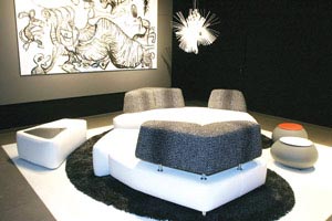 Leolux的椅子和沙發(fā)一直以來都以流暢的線條和簡潔的設(shè)計聞名于世,在這次科隆國際家具展上,Leolux的空間組合也很注重這種溫暖的簡潔:沙發(fā)坐墩線條圓潤簡潔、吊燈和墻上抽象的畫作現(xiàn)代感極強———整體空間簡潔而現(xiàn)代。