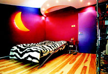 柔和的燈光使臥室充滿溫馨,月形燈與多個小射燈猶如星月交輝相映成趣,浪漫的氛圍使房子主人的文化品位含蓄地表達出來。