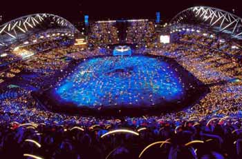 本屆奧運會的比賽是提前開幕式兩天,從9月13日開始的。9月15日的開幕式進行得精彩紛呈,而獨樹一幟的圣火點燃儀式更是將開幕式的熱烈氣氛推向了高潮,點燃圣火的是澳大利亞優(yōu)秀女子短跑運動員卡茜?弗里曼。在澳大利亞總督威廉?迪恩爵士宣布本屆奧運會開幕后,曲棍球運動員雷切爾?霍克斯和水球裁判員彼得?克爾分別代表運動員和裁判員進行了宣誓。