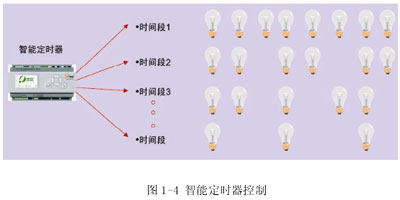 采用智能定時器,在沒有采光或者不能利用采光時。按照工作時間及非工作時間不同的時間段切換不同的燈光組合,在滿足需要的前提下,投入最少的燈。見圖1-4。