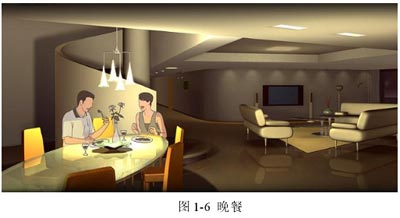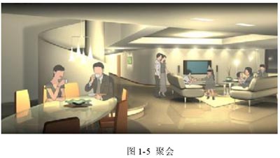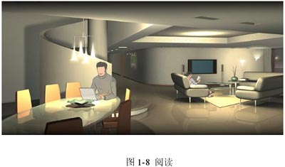在一定場所或整個樓宇,用戶預設多種場景,按動一個按鍵,即可調(diào)用要的場景。圖1-5至1-8為場景變換狀態(tài)。