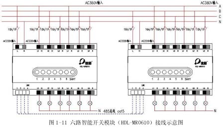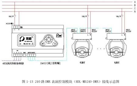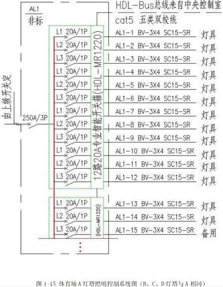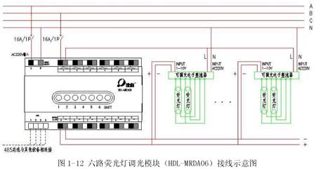 HDL-BUS系統(tǒng)為廣州河東電子公司生產(chǎn)的智能照明控制系統(tǒng),不僅有上述功能,該系統(tǒng)采用開放性及高擴展性協(xié)議,能使照明系統(tǒng)與樓宇控制系統(tǒng)、消防系統(tǒng)、保安系統(tǒng)、舞臺燈光系統(tǒng)等實現(xiàn)無縫聯(lián)接。其接線示意圖見 1-11、1-12、1-13。