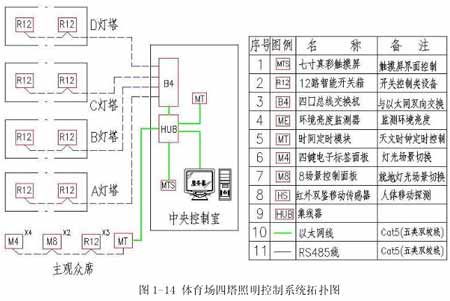 體育場四塔照明控制系統(tǒng)原理見圖1-14、1-15、1-16。