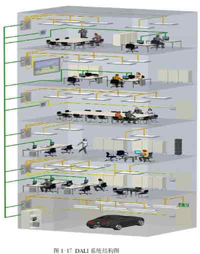 數(shù)字式可尋址燈光接口(Digital Addressahle Lighting Interface)簡稱 DALI,DALI 是一個數(shù)據(jù)傳輸?shù)膮f(xié)議,它定義了電子鎮(zhèn)流器與設備控制器之間的數(shù)字通信方式,它不是一種新的總線, DALI系統(tǒng)是結構簡單、安裝方便、操作容易、