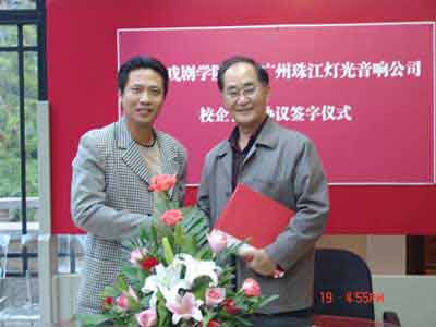 2007年10月20日,廣州珠江燈光音響實業(yè)有限公司(以下簡稱“珠江燈光”)與上海戲劇學(xué)院(以下簡稱“上戲”)就企業(yè)、院校共建“舞臺燈光技術(shù)研究培訓(xùn)基地”和“研發(fā)中心”協(xié)議正式簽約。這是“珠江燈光”繼創(chuàng)辦“廣州大學(xué)聲像與燈光技術(shù)研究所研究基地”后,與高校聯(lián)合創(chuàng)辦的又一個教學(xué)、實踐、培訓(xùn)基地。珠江將向上海戲劇學(xué)院提供先進專業(yè)舞臺燈光演藝設(shè)備,作為教學(xué)與實踐使用。