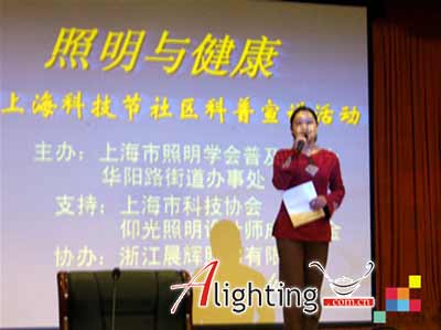 當(dāng)照明逐漸步入人們生活領(lǐng)域時,照明設(shè)計(jì)師和專家學(xué)者繼續(xù)不遺余力地為營造更美好的城市景觀及室內(nèi)照明環(huán)境創(chuàng)造條件。如何讓更多的人分享照明應(yīng)用成果,體驗(yàn)舒適愉悅的照明環(huán)境如何改善人們的生活質(zhì)量,感受綠色照明文化成為了業(yè)界與學(xué)術(shù)界共同探討的問題。2007年5月25日,由上海市照明學(xué)會普及委員會及上海華陽街道辦事處主辦,仰光照明設(shè)計(jì)師成長基金及上海市科技協(xié)會支持,“照明與健康”主題宣講活動在上海華陽社區(qū)順利拉開帷幕。