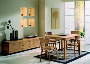 影響廚房色調(diào)的主要因素是廚房家具。為了充分利用空間來發(fā)揮廚房的各個功能區(qū)的作用,采用的各種布局形式,都會占有墻立面醒目的位置。為各個工作中心的主要設(shè)施以及為之完善的配套家具,都有占據(jù)室內(nèi)空間的造型,所余空的墻面較少。因此,當(dāng)確定了這些家具的色調(diào)時,也就等于確定了廚房的主調(diào)。天棚和地面等均可服從于家具的色調(diào)來選擇相應(yīng)的配色,以天棚和地面的配色協(xié)調(diào)于家具,或者等同于家具,地面還可以選用等同于墻面的色彩或放樣花飾來處理,會有延伸空間的感覺。