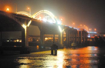 昨晚,東甌大橋霓虹閃爍,與北邊的江心嶼“燈光秀”和南邊的望江路亮麗工程相輝映,組成了一片璀璨奪目的夜景,使得鹿城的夜晚更加活力四射。據(jù)了解,沿江一帶的亮麗工程?hào)|起海壇山莊,西至東甌大橋,包括沿線建筑物、構(gòu)筑物、綠化帶、江濱堤岸以及郭公山、海壇山莊景觀的環(huán)境燈飾及照明工程,全長(zhǎng)約4.5公里。除東甌大橋霓虹燈飾最近剛剛安裝完成外,上述其他環(huán)境燈飾及照明工程均已于去年國(guó)慶前施工完畢。