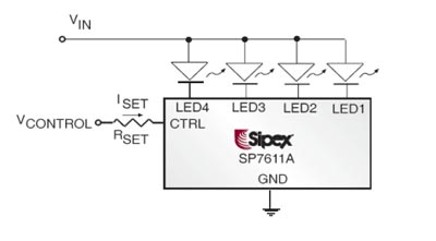 圖1 :SP761X是基于灌電流型的降壓LED驅(qū)動器。