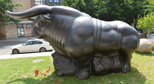大盤一片綠油油,交易所里、電腦屏幕前一片哀鴻遍野,不少投資者惶恐不安。面對(duì)近期不容樂觀的經(jīng)濟(jì)數(shù)據(jù)和疲弱的股市,央行終于在市場期待中出手,周二晚間,央行再祭降息降準(zhǔn)利器,全球股市聞聲大漲,只是國內(nèi)股民不敢大喜。為此,小編特意整理了一組“牛壓熊”的雕塑美圖,給大伙壓壓驚。