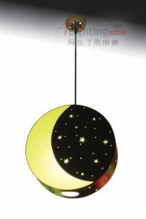 同樣是以星星和月亮為主題的吊燈,夢幻般的設(shè)計元素體現(xiàn)在燈罩上。夜晚點亮的時候,孩子仿佛看到星星依偎在月亮旁邊的夜空,自然又神秘。