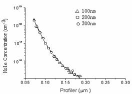 圖1 不同厚度Zn膜激光誘導(dǎo)摻雜后的載流子分布