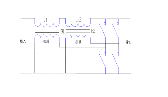 此類調(diào)節(jié)器在電路中串入了多組補(bǔ)償變壓器,通過(guò)調(diào)節(jié)不同的繼電器觸點(diǎn),便可在輸出端得到不同的電壓組合,如圖中輸出可以等于輸入減去u1,或減去u2,或減去(u1+u2)。當(dāng)補(bǔ)償變壓器組數(shù)足夠多時(shí)可得到需要的任意調(diào)節(jié)精度,缺點(diǎn)是電壓調(diào)節(jié)為有級(jí)調(diào)節(jié),當(dāng)補(bǔ)償變壓器組數(shù)少時(shí),一級(jí)調(diào)節(jié)的電壓可能產(chǎn)生跳躍,電路復(fù)雜,且為有觸點(diǎn)切換,當(dāng)切換大電感的初級(jí)線圈時(shí),容易產(chǎn)生過(guò)電壓和沖擊電流,使得運(yùn)行不穩(wěn)定。