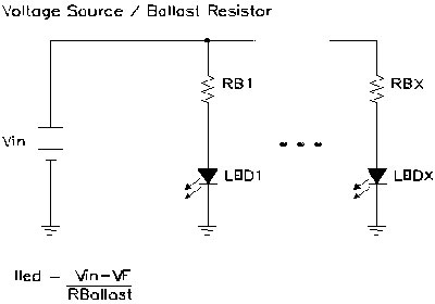 圖1:帶鎮(zhèn)流電阻的電壓電源導(dǎo)致效率降低和正向電流失配
