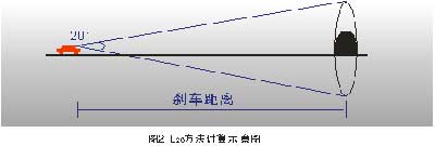 這是隧道入口前的部分路面,嚴格說來它不是隧道部分。在這一區(qū)域駕駛員必須能夠看清隧道內部和可能的障礙物,才不至于降低車速。這一區(qū)域的駕駛員的亮度適應情況將決定了下一區(qū)域需要的亮度水平。CIE計算這個亮度適應的方法是L20方法,它計算的是在進入區(qū)的起點以駕駛員的視線為中心的20的視角范圍內四周、天空及路面的平均亮度(如圖2所示)。很明顯白天的亮度要明顯高于晚間,因此隧道照明白天的要求更高。