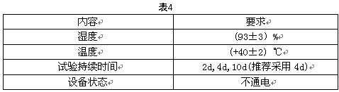 要驗(yàn)證設(shè)備的耐潮濕能力,應(yīng)按表4進(jìn)行濕熱試驗(yàn)。