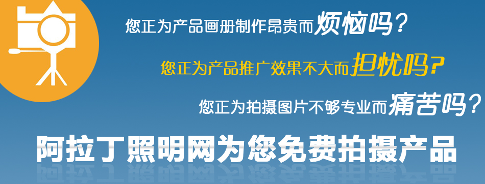 為了更好地服務(wù)網(wǎng)上展廳會員企業(yè),體現(xiàn)會員企業(yè)產(chǎn)品的豐富性與多樣性,同時也增強(qiáng)企業(yè)在阿拉丁照明網(wǎng)上的展示效果,在中國照明電器產(chǎn)品大賽中脫穎而出,阿拉丁照明網(wǎng)特別成立攝影小組,派專業(yè)攝影人員親臨會員企業(yè)所在地,拍攝企業(yè)產(chǎn)品。