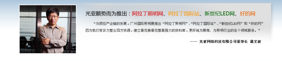 阿拉丁照明網(wǎng)(全球照明行業(yè)第一門戶)、新世紀(jì)LED網(wǎng)(LED產(chǎn)業(yè)技術(shù)交流資深平臺(tái))、光亞國(guó)際網(wǎng)(專注中國(guó)照明產(chǎn)品出口)、好的網(wǎng)(企業(yè)畫冊(cè)制作精美電子版的高效工具)是搜索照明及LED“參展商信息”、“優(yōu)質(zhì)產(chǎn)品” 的高效網(wǎng)絡(luò)商務(wù)平臺(tái);是買家展前、展中、展后查找、采購(gòu)參展商產(chǎn)品的網(wǎng)絡(luò)平臺(tái)。