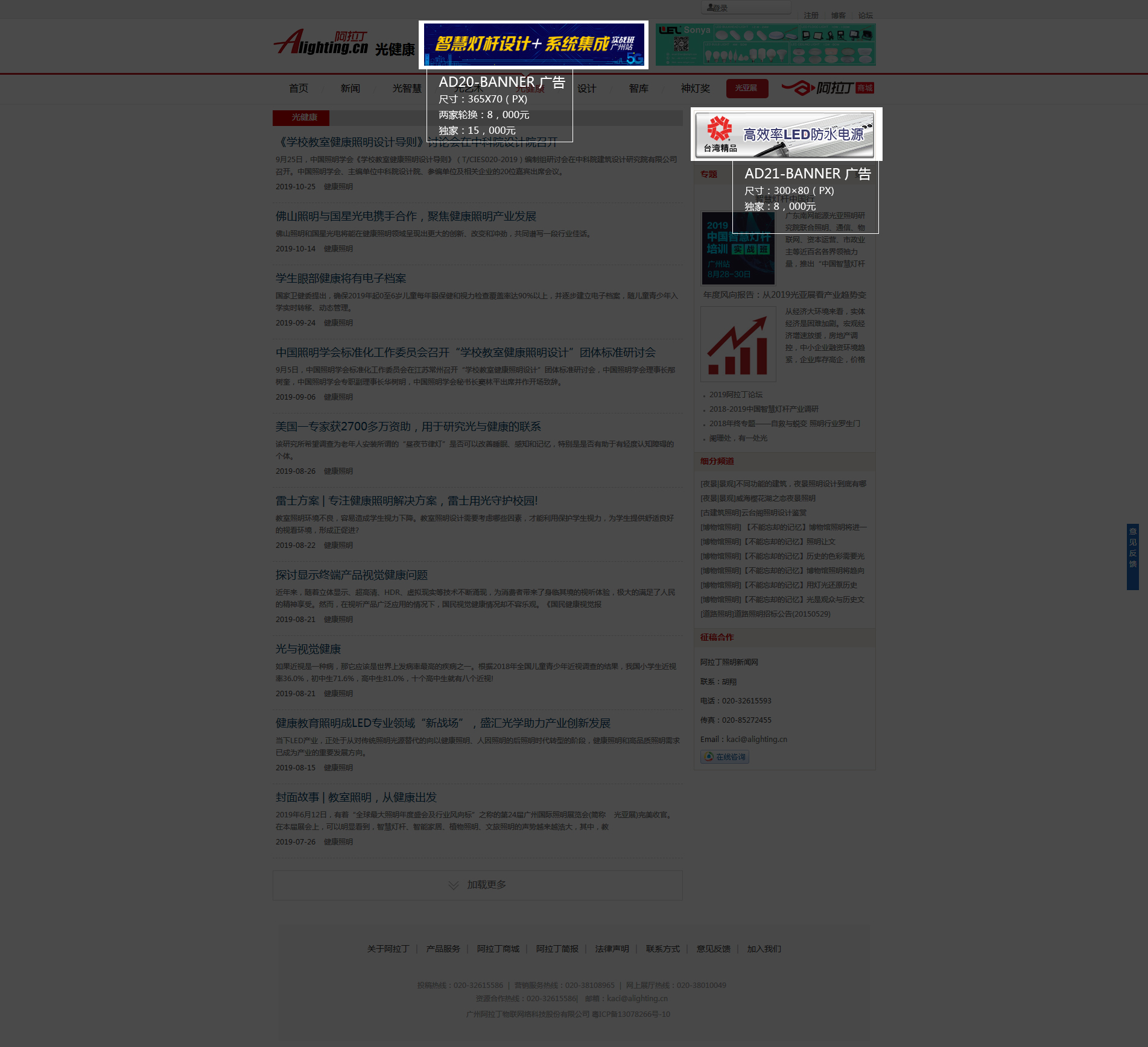 | AD 19 | 光智慧 | 首頁頂部Banner | Banner廣告 | 365×60 | 2 | 8,000 | 15,000 | 含首頁、列表頁 | |