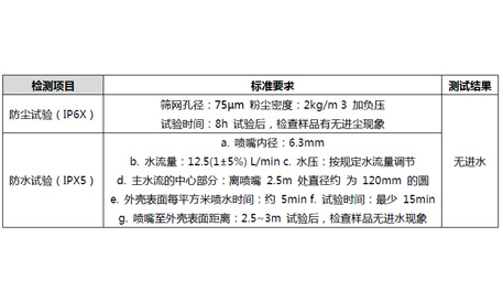 IP等級是衡量戶外燈具的一個重要指標(biāo),進(jìn)水可能引發(fā)安全問題,進(jìn)塵則會影響燈具正常發(fā)光。此次樣品IP等級為65,實驗嚴(yán)格按照標(biāo)準(zhǔn)對IP65相關(guān)要求進(jìn)行測試,測試過程中無進(jìn)塵與進(jìn)水現(xiàn)象發(fā)生......[詳細(xì)]