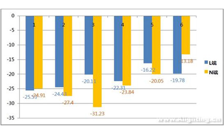 此次樣品功率大于25W,根據(jù)國際標準EN55015相關標準進行測試,樣品實測最差頻點余量在-13.18~-31.23之間,從最大限度降低輻射干擾強度的角度來看滿足標準要求。