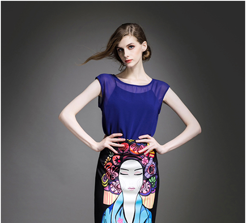 夏季藍(lán)色服裝,照射燈光光色在3300K;