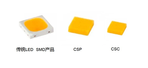 顧名思義,CSC(Chip Scale Coat)白話(huà)文:“晶片級(jí)涂覆”,可簡(jiǎn)單概敘為對(duì)單顆晶片進(jìn)行熒光粉高精度涂覆。與前輩CSP相比,在流明密度(更小尺寸,更大電流)方面的本領(lǐng)比前輩有高出不少,而且CSC結(jié)構(gòu)可在通用的封裝工藝中實(shí)現(xiàn)的,對(duì)光色的可控性比CSP大幅提升。