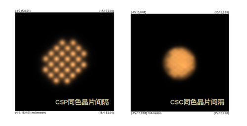 【PK結(jié)果】在相同功率下,匹配同樣的光學(xué)器件,CSC中心光強(qiáng)比CSP高25%。
