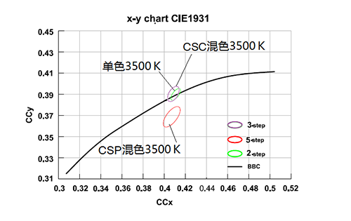 【PK結(jié)果】CSC結(jié)構(gòu)可匹配通用光學(xué)器件,實(shí)現(xiàn)均勻混光,達(dá)到單色COB效果;