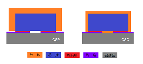 【不同點(diǎn)】CSP需要專(zhuān)用固定支架及反光杯,配透鏡難度高。