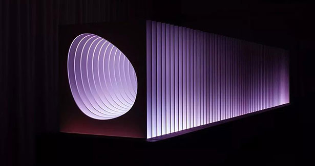 裝置可視針對光圈與燈光展開的研究,全部采用這種krion?材料制作,材料觸感溫暖,與天然石材類似,作品標志著建筑室內(nèi)設計與辦公環(huán)境新的融合。