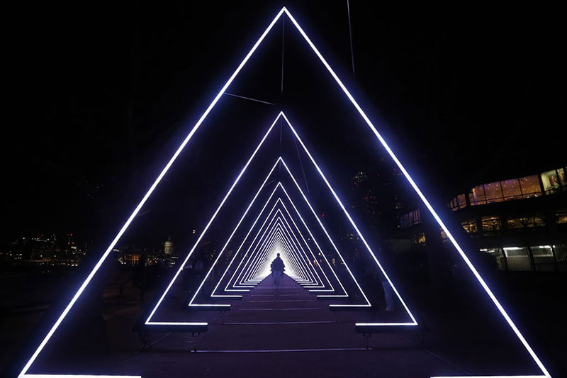 盧米埃爾燈光節(jié)(Lumiere Light Festival)于2009年在英國杜倫首次舉辦,之后又“巡展”至英國多地,2016年來到了倫敦。盧米埃爾燈光節(jié)是英國最大的燈光節(jié),其“巡展”的方式,讓英國多地的居民和游客都能夠有機(jī)會(huì)一賞燈光節(jié)的魅力。盧米埃爾燈光節(jié)由英國創(chuàng)意公司Artichoke主辦,這一公司常與藝術(shù)家合作,在公共空間中進(jìn)行一些藝術(shù)項(xiàng)目,不久前,為紀(jì)念倫敦大火而在泰晤士河畔焚燒模型的計(jì)劃,即是由這個(gè)公司主辦的。