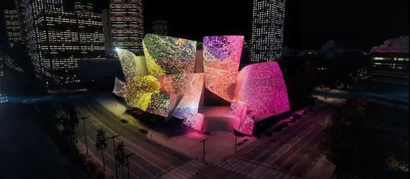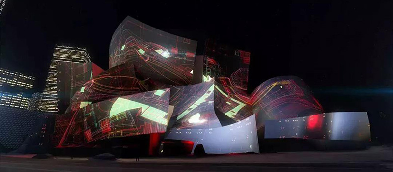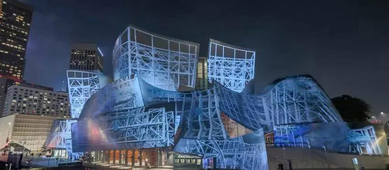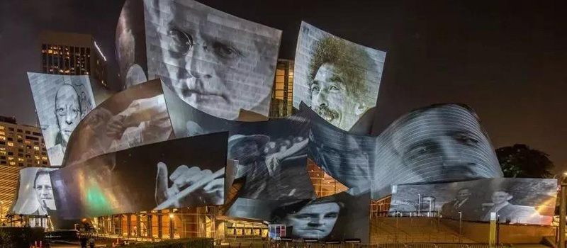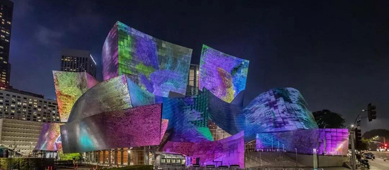 對于知名建筑的“表皮”進(jìn)行創(chuàng)意性改造,總是能吸引眼球,且充滿話題性。例如每年音樂燈光節(jié)上的悉尼歌劇院,當(dāng)然,弗蘭克?蓋里(Frank Gehry)在洛杉磯設(shè)計(jì)的標(biāo)志性建筑華特?迪士尼音樂廳(Walt Disney Concert Hall)也是其一。這次的光影大秀是由土耳其藝術(shù)家瑞克?阿納多(Refik Anadol)操刀進(jìn)行夢幻又繽紛的"改造"。表演免費(fèi)向公眾開放。為了紀(jì)念洛杉磯愛樂樂團(tuán)成立100周年,一場前所未有的三維投影表演將在華特?迪士尼音樂廳的不銹鋼外立面上上演。