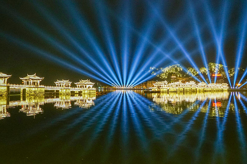 本次亮燈工程的設(shè)計(jì)團(tuán)隊(duì)曾負(fù)責(zé)G20峰會(huì)、杭州西湖夜景,由央視的燈光控制師親自操刀,他們的設(shè)計(jì)主題可濃縮為以下四句詩?!耙唤瓋砂度揭?,明滅樓臺(tái)號(hào)昌黎,水墨鄉(xiāng)愁丹青韻,和風(fēng)伴月思無邪?!?/p>