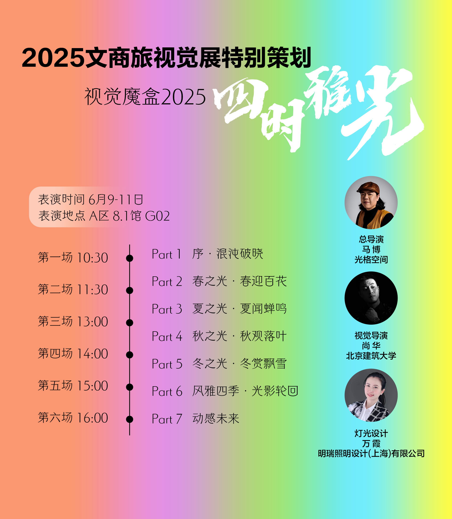 2025年文旅視覺展由全球最大規(guī)模照明展——廣州國際照明展覽會和廣州阿拉丁物聯(lián)網(wǎng)絡科技股份有限公司聯(lián)合發(fā)起,圍繞“沉浸式體驗、文旅夜游、演藝劇場、舞美燈光、數(shù)字展陳、設備投影、光藝術互動裝置”等方面,策劃了以“文旅視覺主題展覽+文商旅系列主題論壇+特別策劃”相結合的主題展覽。