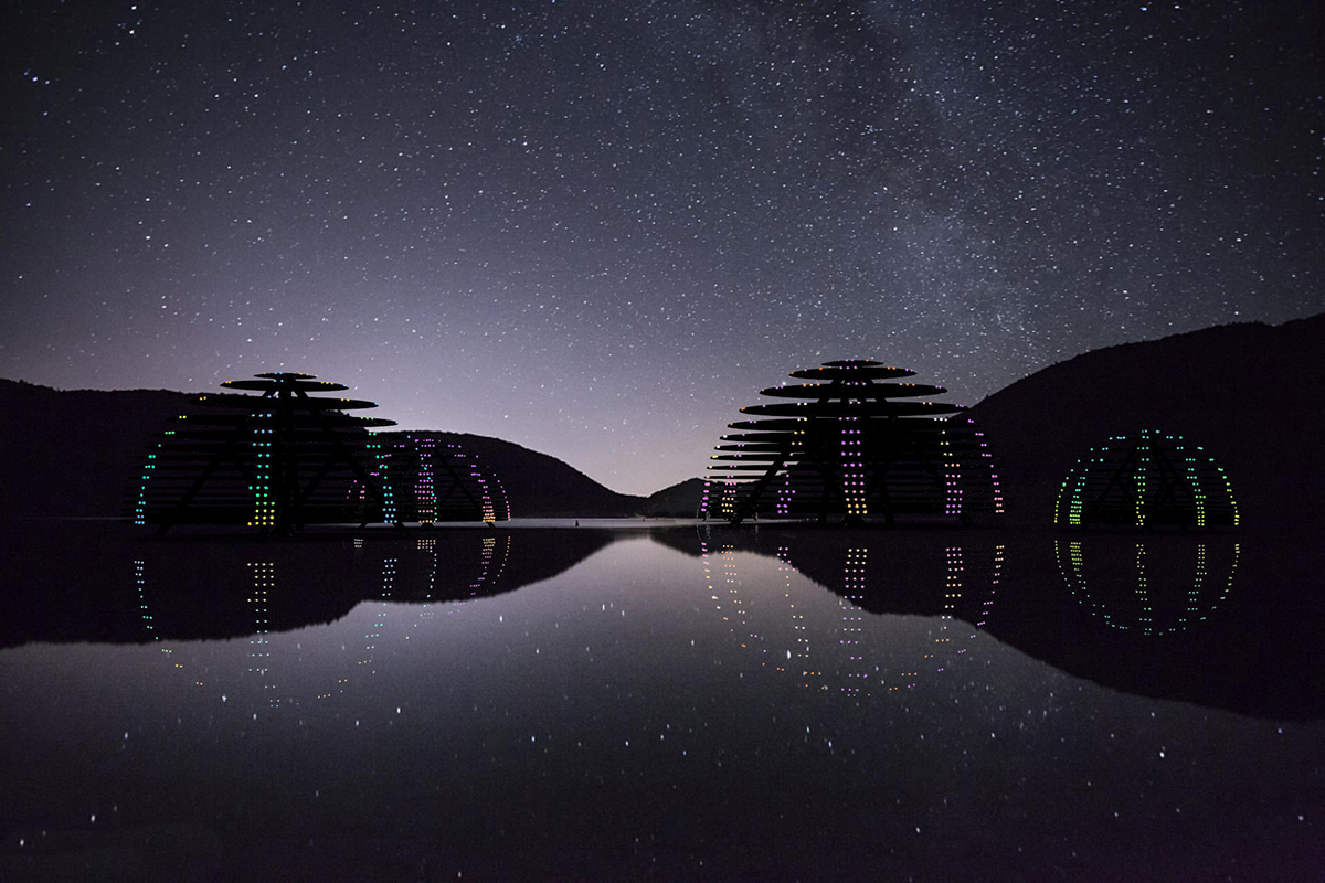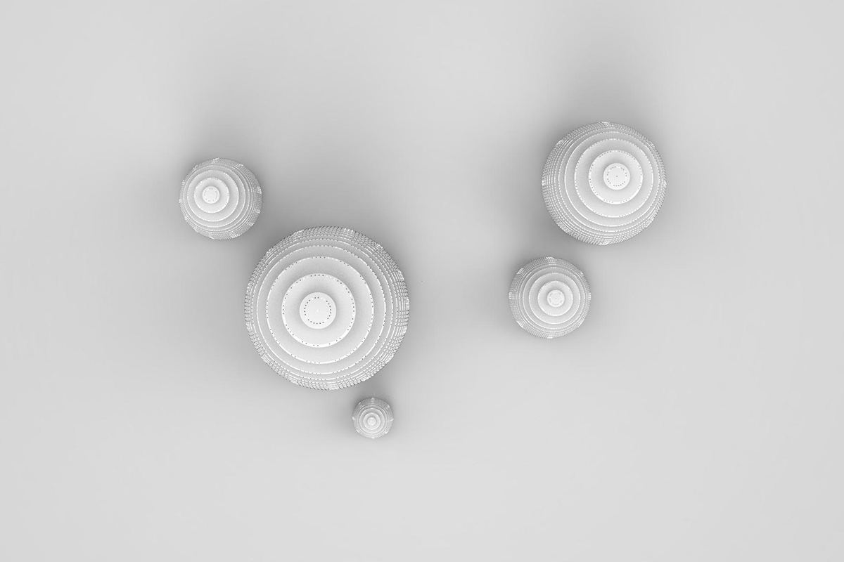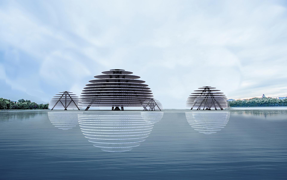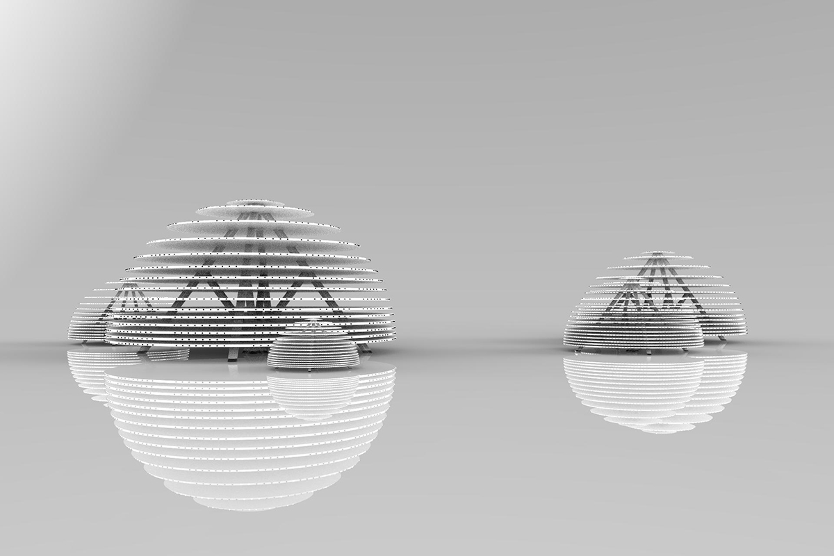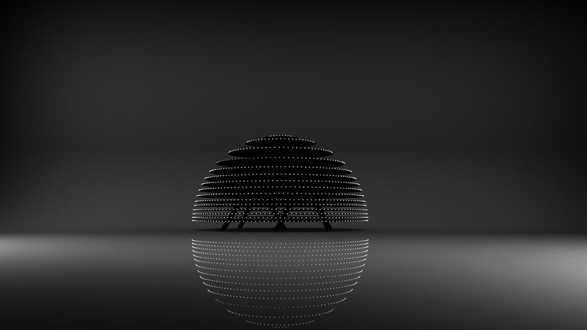 這是一款景觀燈。燈具放置在有水面的地方,和倒影相映為一個球體。圓盤側(cè)邊裝一顆顆連續(xù)的點光源,通過燈光編程控制燈光效果。燈光可變換光彩和影像。 白色散點光模式,相互映射,體現(xiàn)出祥和平靜的氛圍。仿佛遨游星空,看到宇宙中漂浮的星球。讓人冥思宇宙、自然。 彩色徑向光變化,仿生于深海發(fā)光櫛水母,變幻莫測的燈光,就像會呼吸的生物體,帶來神秘的體驗,仿佛遨游深海。 該組景觀燈錯落有致,各個角度觀感均不相同,給人以樂趣和新鮮感。