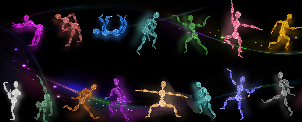 采用一個萬向球元素,可以變化出上千和上萬個運動員形態(tài),根據不同主題、內容,瞬間改變運動姿勢,也可以不定期調換動作和調整顏色。
